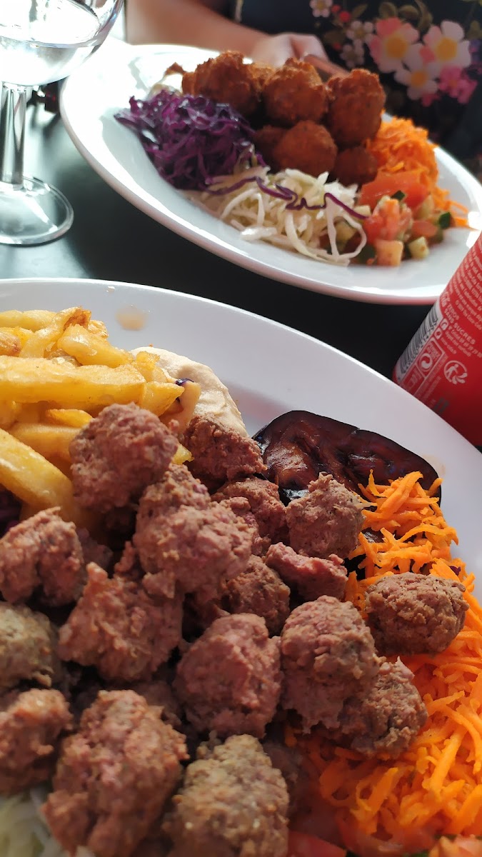 The menu is a testament to the rich flavors of the region. Start your culinary adventure with their homemade Babaganoush (€7.00), a smoky eggplant puree, drizzled with olive oil and tahini. It’s an exquisite introduction that sets the stage for what’s to come. If you're in the mood for something classic, the Hummus (€8.00) is creamy perfection, striking a balance between tangy lemon and rich tahini. For a delightful twist, don't miss out on the Hummus Falafel, a seamless fusion of textures that will leave you craving more.